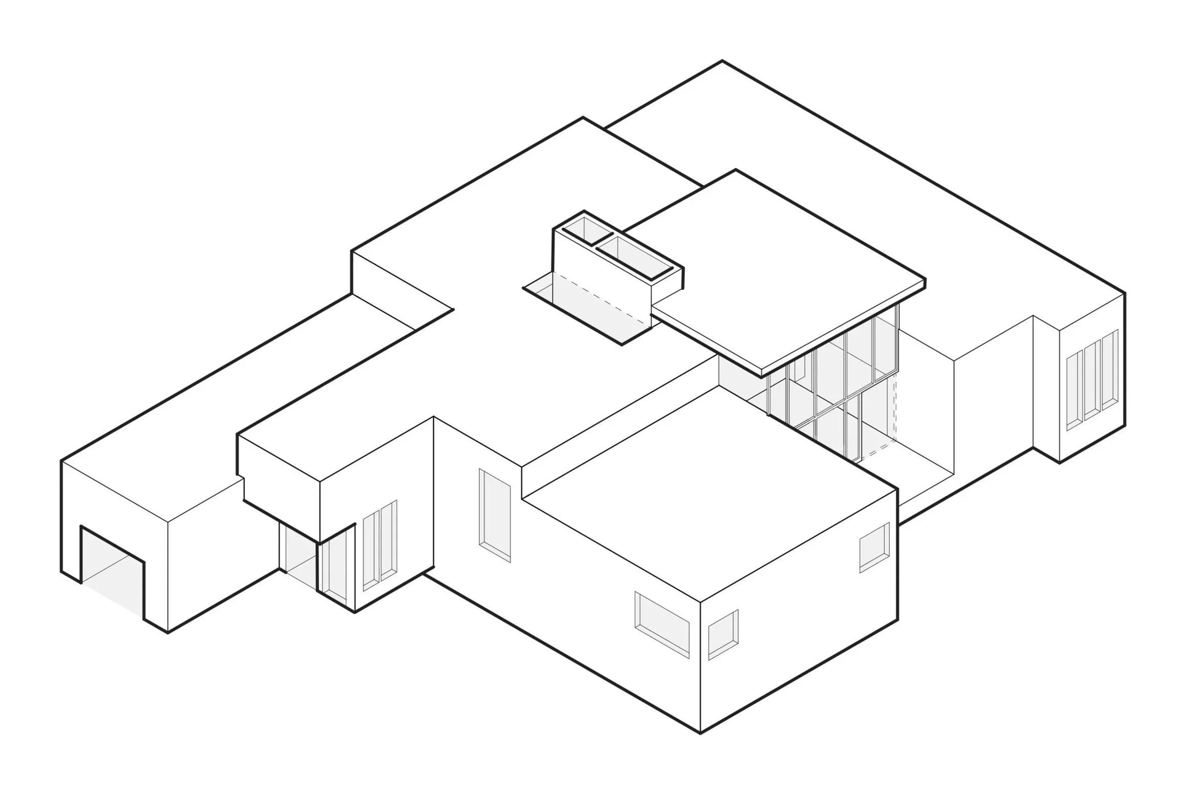 Material and form remain disciplined throughout. A neutral palette and calibrated detailing amplify the spatial clarity, allowing the volumes to read as architectural figures rather than additive parts.